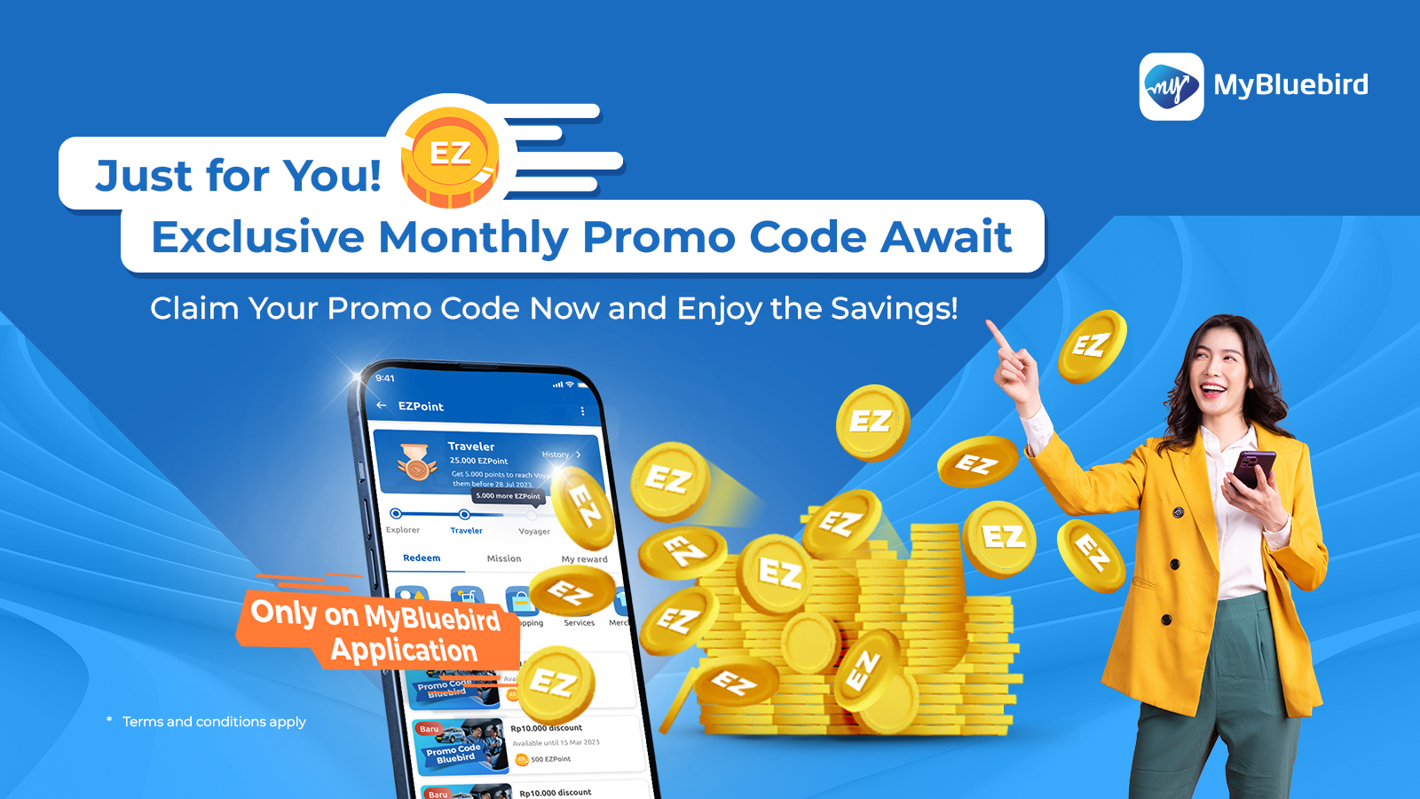- The promo code is valid exclusively on the MyBluebird application.