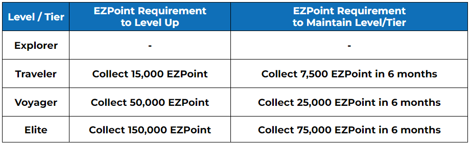 Your EZPoint account Tier/Level will be determined based on the accumulated results of your transactions using MyBluebird from August 2022 - August 2023